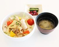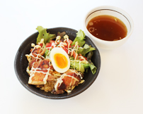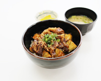 フードコート豚バラ肉をたっぷり80g使用し、しゃぶしゃぶ風に仕上げた一品。あっさりとした醤油ダレをかけた夏バテの方にもピッタリな丼です。豚肉は湯引きして脂を落としているので、ヘルシー志向な方にもおすすめです!
