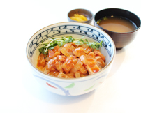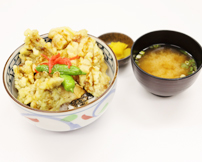 イートインコーナー白エビのかき揚げをどんッ!と丼に載せたボリューム満点メニュー!カツオ出汁が効いたタレが食欲をそそります。夏の疲労回復にぴったりのメニューです。