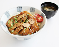 フードコート肉厚で柔らかい四元豚を特製トンテキソースでソテーし、ニンニクチップをトッピングしたスタミナ満点の丼。夏の疲労回復やパワーアップにおススメな一品です。