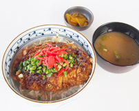 フードコートボリューム満点のジャンボチキンカツに和風あんかけをかけた新しい丼! 餡には、群馬県の岡直三郎商店の「日本一しょうゆ」を使用しています。サクサクのカツとトロッとしたあんかけが絶妙にマッチします。是非ご賞味下さい!