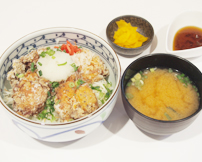 フードコートジューシーな鶏の唐揚げに、大根おろしを添えたスタミナ満点の丼メニュー。新潟名産のピリ辛野菜「かぐら南蛮」を使用したポン酢を、上からかけてさっぱりとお召し上がりください。