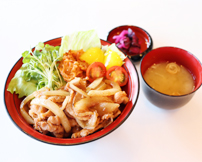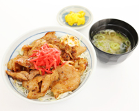 フードコート銘柄豚「純白のビアンカ」の肩ロース肉を、生姜焼き風に仕上げました。肉の旨味をしっかり味わえるので、肉好きにおススメなどんぶりです!