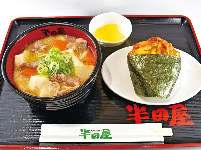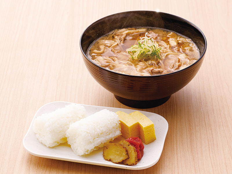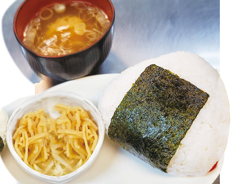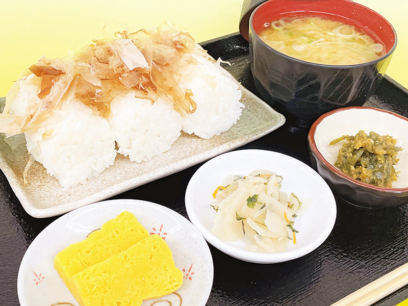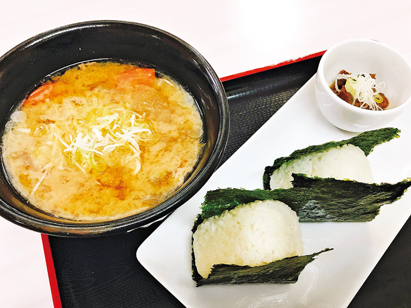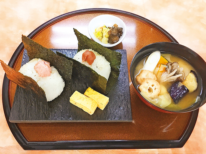 宮城県産の『ひとめぼれ』を使ったおにぎり、さといもが入った味噌仕立ての宮城風いも煮をセットにした王道メニュー。