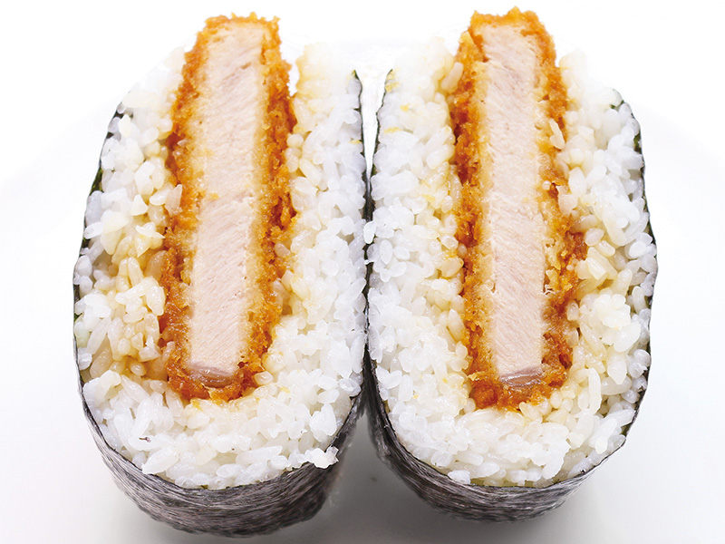 にぎらないから「おにぎらず」。ソースカツをまるまる一枚はさんだ、ボリューム満点の一品です。