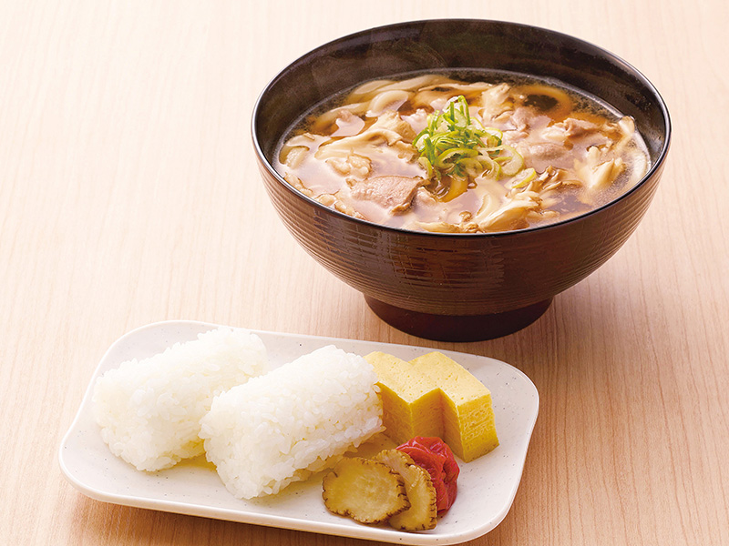 おにぎりと舞茸入り鴨なんばうどんセット