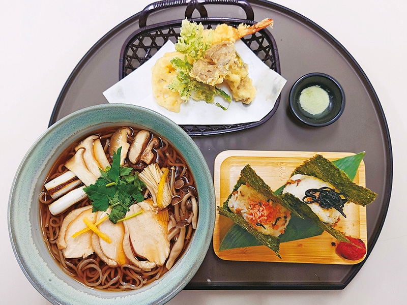 伊達鶏ときのこそば膳(きのこご飯おにぎり)