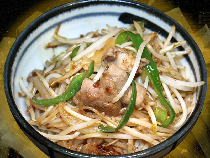 長岡ポークを使用し、小千谷市・山崎醸造の醤油麴のタレが良くからんだ食がすすむ一品です。彩りでパプリカとピーマンを使用しています。アクセントにパンチの効いたフライドガーリックを使ったおすすめの一品です。