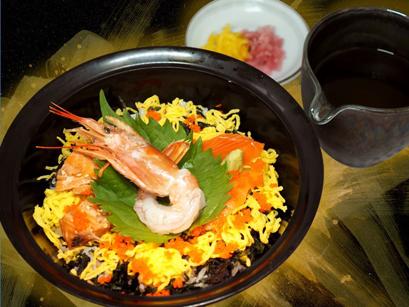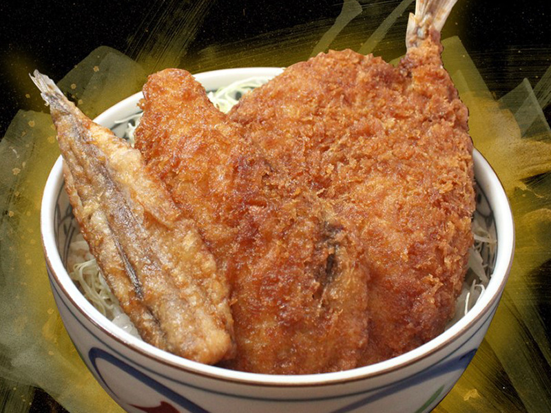 今が旬の魚、上越特産の「メギス」と国産の「ブリ」、そして「アジ」の3種の魚を使用した、あまからのたれにくぐらせた魚好きにはたまらない丼です。