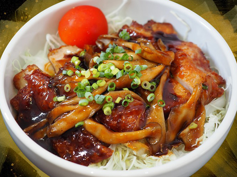 鶏肉を揚げ、雪国舞茸・新潟県産しめじを混ぜたデミグラスソースをたっぷりかけました。ジューシーな鶏肉をきのこの香り立つソースと一緒にご堪能ください!