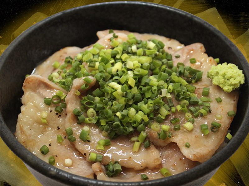 脂身の溶ける温度が人肌より低い32℃で【奇跡の豚】といわれる、妻有ポークをあえてシンプルに塩だれで味付けし小ねぎをのせた丼ぶりにしました。お好みでわさびをつけると、豚の甘さが際立ちます!