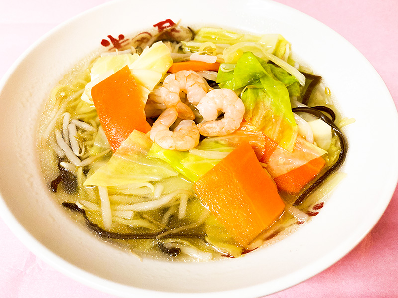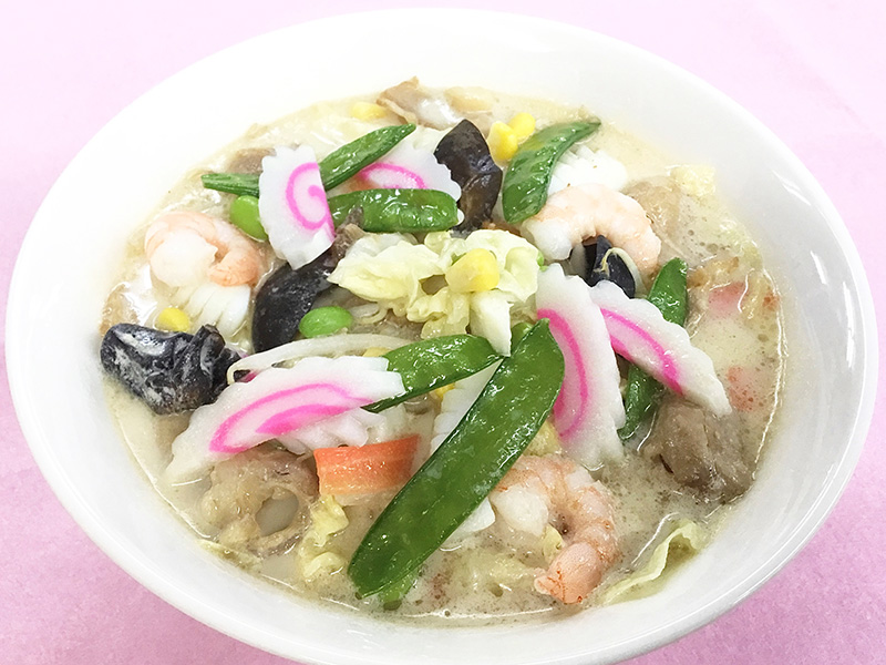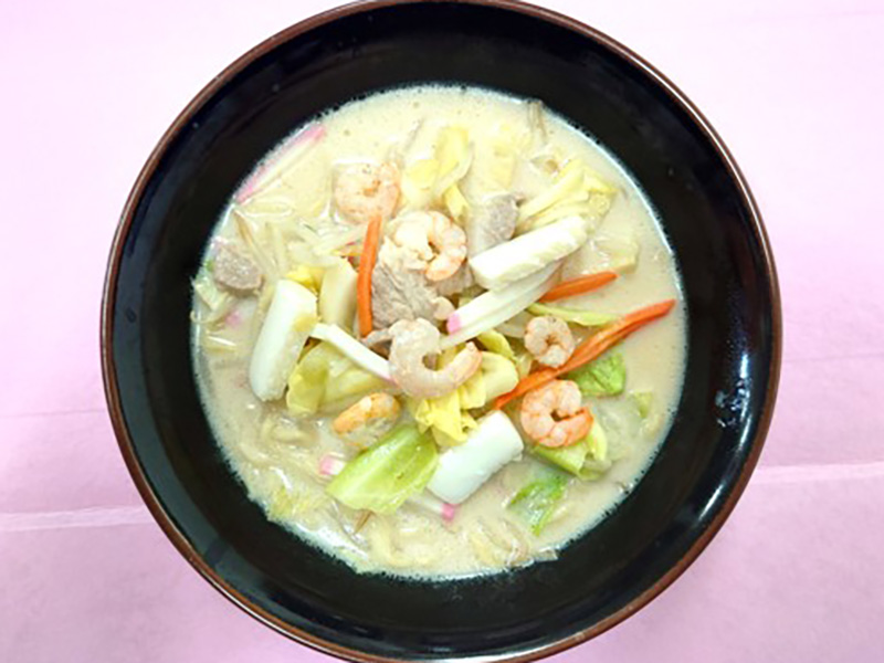 海鮮ベースのとんこつスープに「春キャベツ」の甘みが溶け込んだクリーミーな味わいのちゃんぽんです。