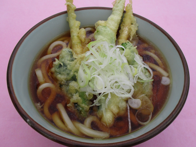 姫竹と菜の花を天ぷらにしてうどん(そば)に乗せました。
