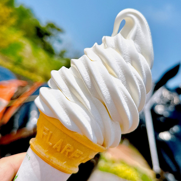 はやきた夢民舎の牛乳ソフト。練乳の甘味ですっきりとした味わいです。