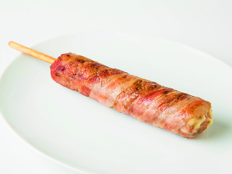マトンを使用した練り肉でチーズを包み、豚バラ肉で巻いてジンギスカンのタレで味付けした輪厚PA限定商品。