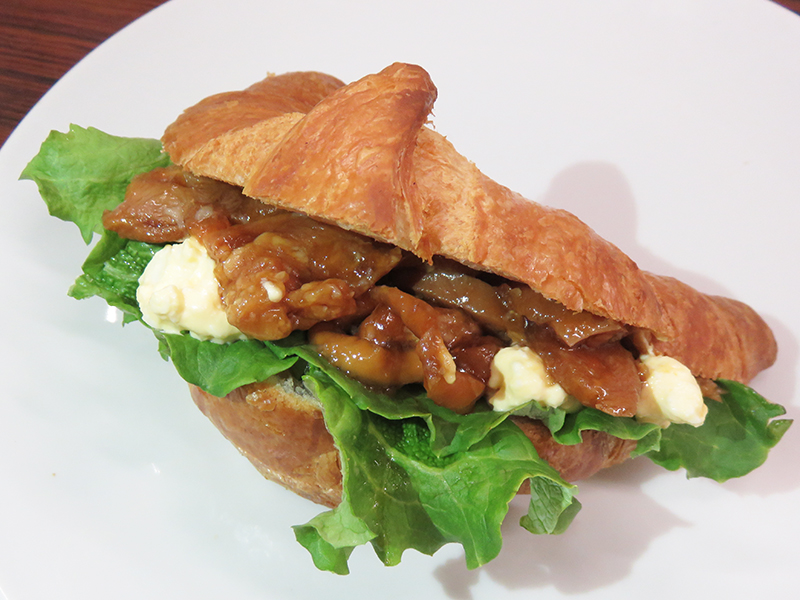 バターたっぷりのギッフェリに、てりやきチキンをトッピング。たまごサラダが良いアクセントに!