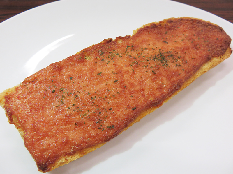 明太マヨをたっぷりと塗り、こんがりと焼き上げたサクサク食感のバゲット。
