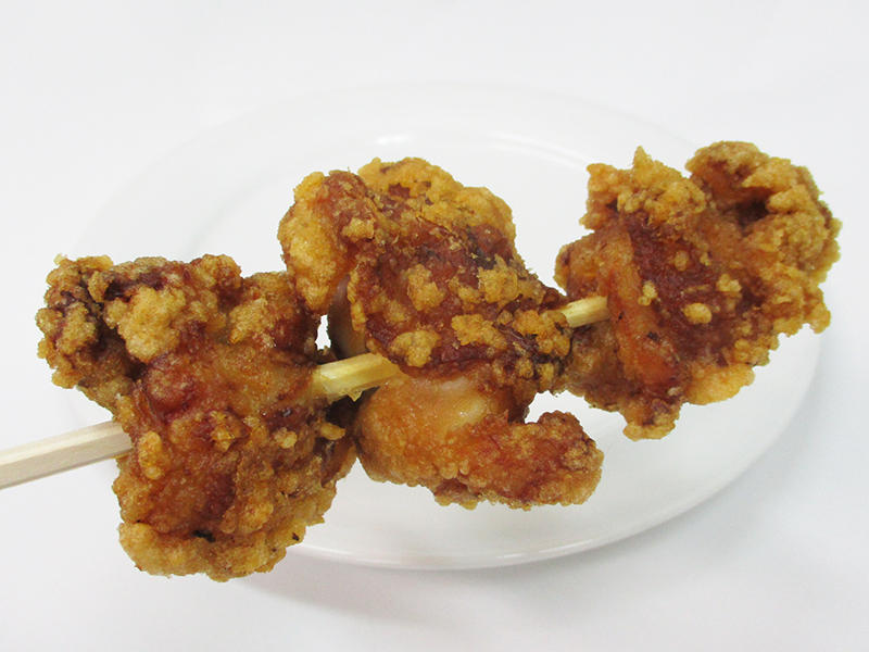 ジューシーな衣と醤油ベースの味付けがやみつきになる北海道名物のザンギを串に。