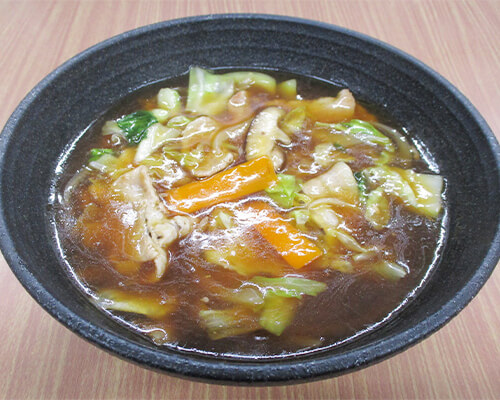 シャキシャキ野菜をふんだんに盛り付けた一品。熱々のスープにボリューム感満載。寒さをこの一杯で心から温まる事まちがいなし。