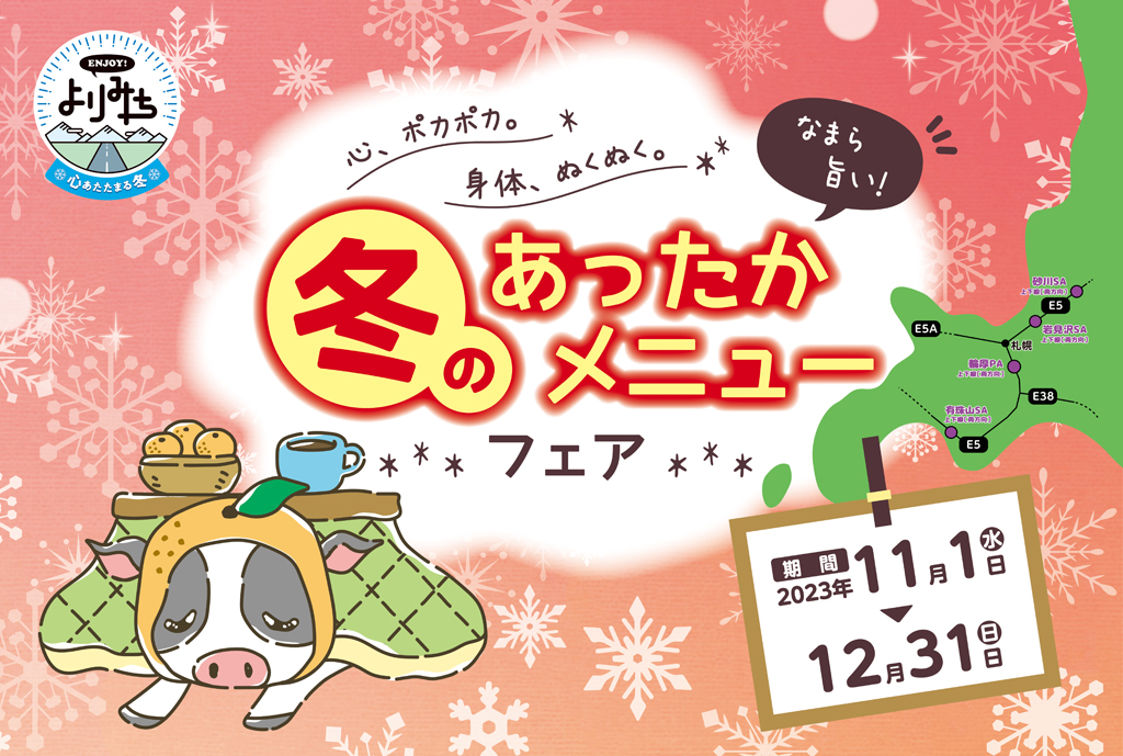 北海道の各SA・PAでは、冬のおいしさ盛りだくさん!みなさまのお越しをお待ちしております。