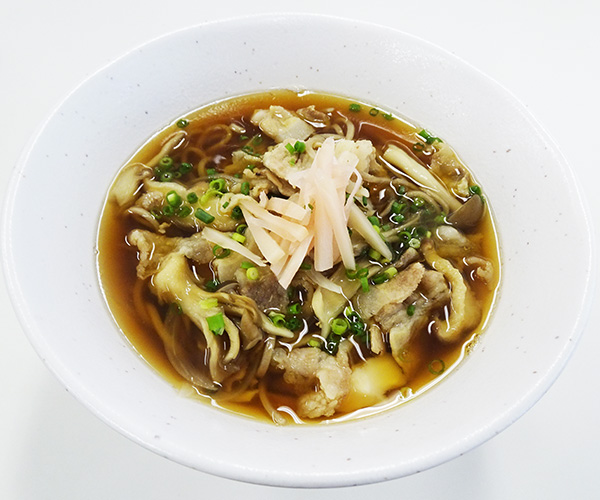 豚肉ときのこのそば(うどん)~岩下の新生姜添え~