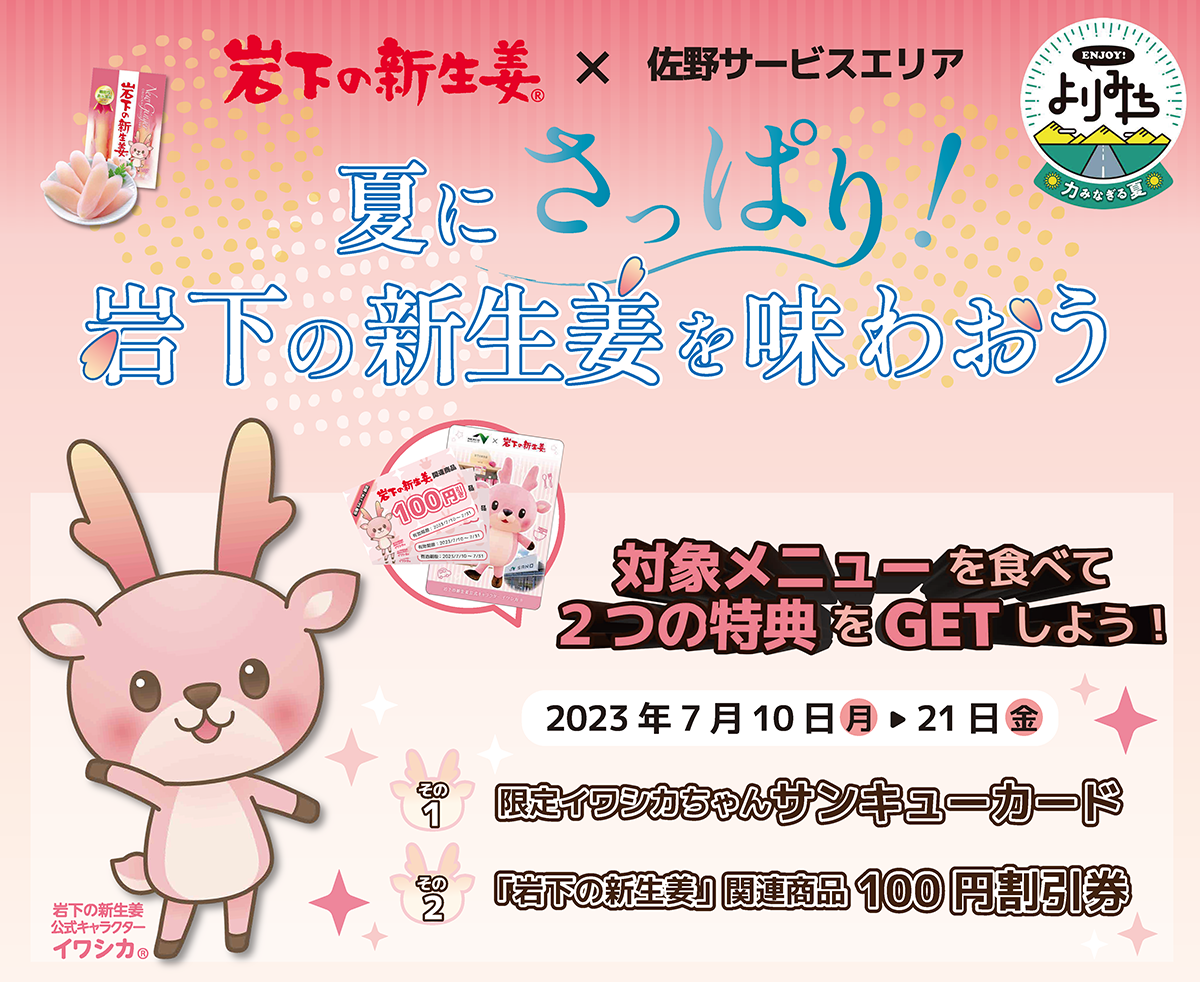 - 夏にさっぱり!岩下の新生姜を味わおう『岩下の新生姜×佐野SA』