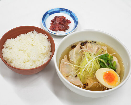 フタバ食品のとんきっき餃子と岩下食品でコラボした『とんきっき生姜餃子』を使用!あっさりと頂く冬限定のスープ生姜餃子定食です。体の芯まで温まりますので是非お召し上がりください。