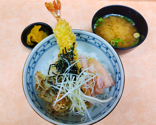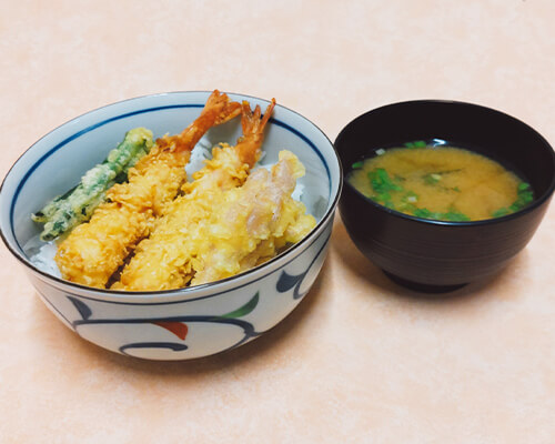 岩下の新生姜と海老の天丼