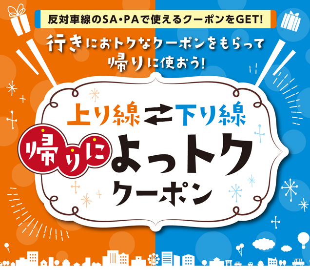 ショッピングコーナーで2,000円(税込)以上のお買い物をされたお客さまに、反対車線の対象SA・PAで使える200円分の「クーポン券」をプレゼント!
