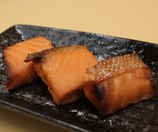 脂の乗ったキングサーモンを、特製の越後味噌と「八海醸造」の酒粕にじっくりと漬け込んだ逸品。ふっくらと焼き上がった旨みたっぷりの身は最高のごはんのおともになります。