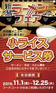 フェア期間中は、対象メニューをご注文の方に、次回以降使用できる「小ライスサービス券」をプレゼント!