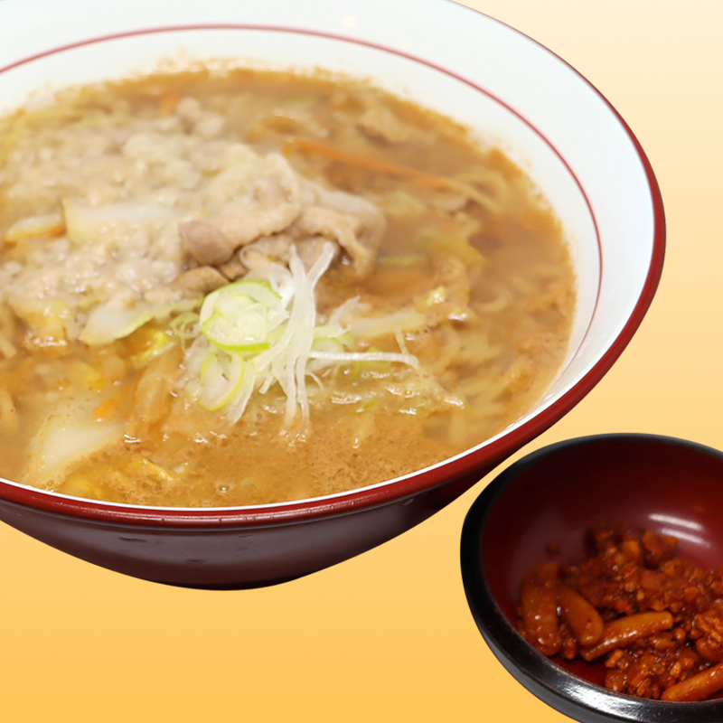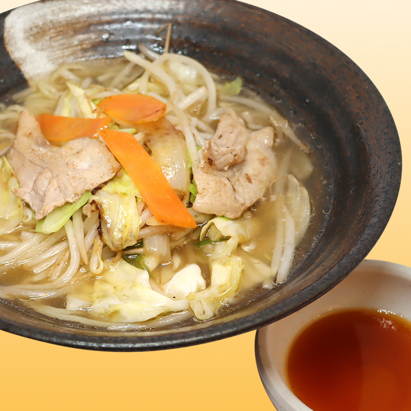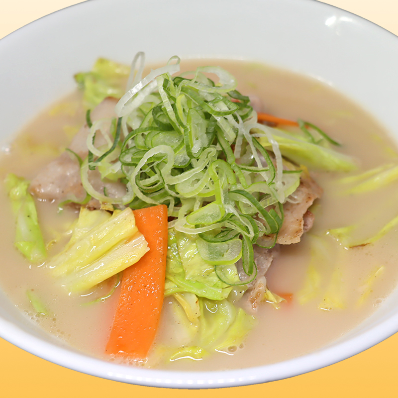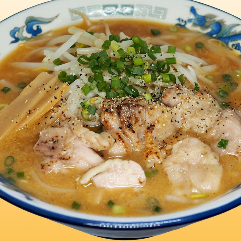 マイルドでコクのある深い味わいが特徴の鶏パイタン。更に味を引き立たせるブレンド胡椒・七味にんにく入りです。