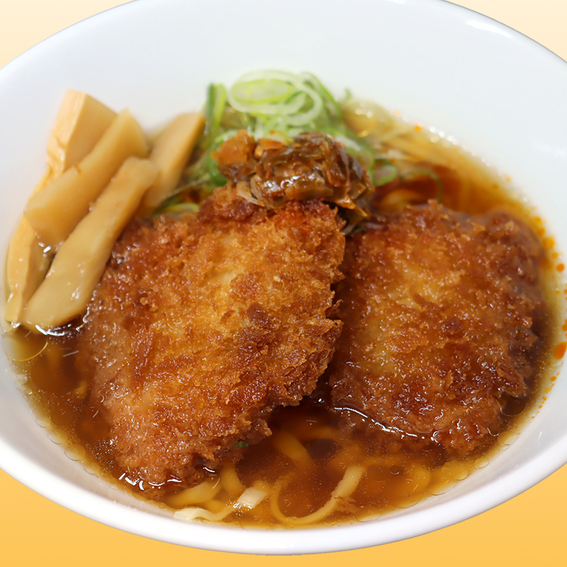 カツが2枚乗り、ボリューム満点!下仁田ねぎラー油を使用した、胡麻の風味香るピリ辛スープが味の決め手。
