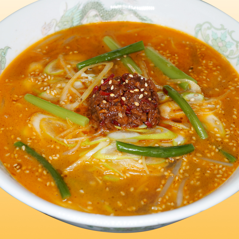 話題の万能調味料「燃えろ!!激辛肉味噌」をトッピング。胡麻香るスープの旨辛な担々麺で体の芯からポッカポカ!