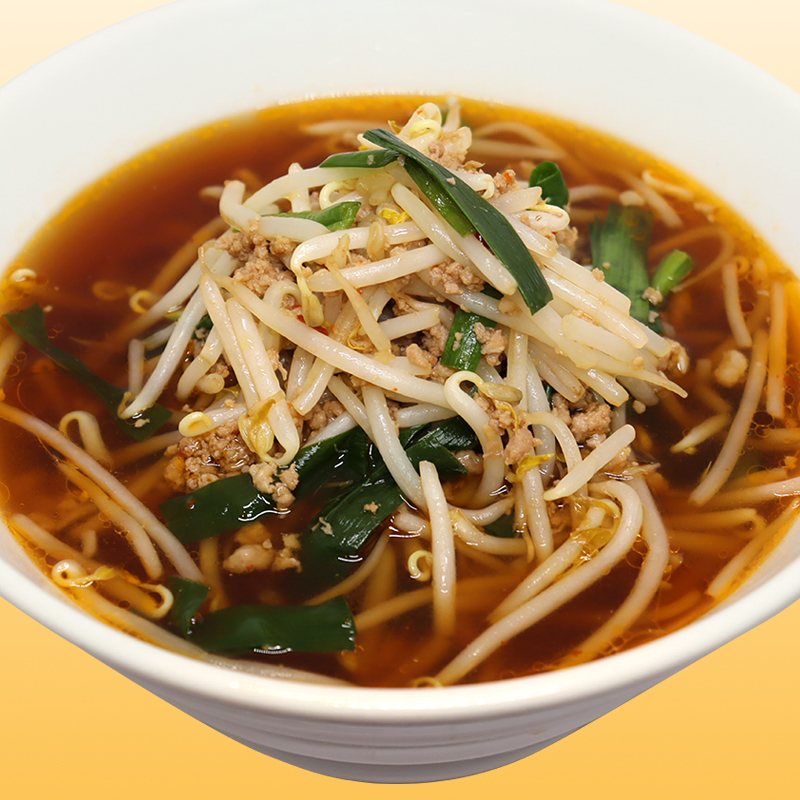 たっぷりのもやしとニラ、ピリ辛のひき肉も入った酸辣湯麺。酸味と辛味のスープで身体が温まる1杯!