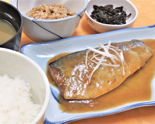 コクのある赤味噌と風味豊かなタレで煮込んだ国産さばが、新米との相性抜群!ご飯が進むイチオシメニューです。