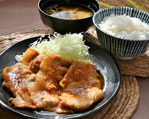 特製生姜タレがしっかり絡んだ自慢の生姜焼きが新米との相性抜群!ごはん大盛りサービス実施中。