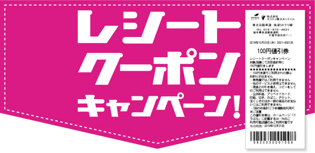 レシートクーポン利用期間:2019年11月1日(金)~12月31日(火)