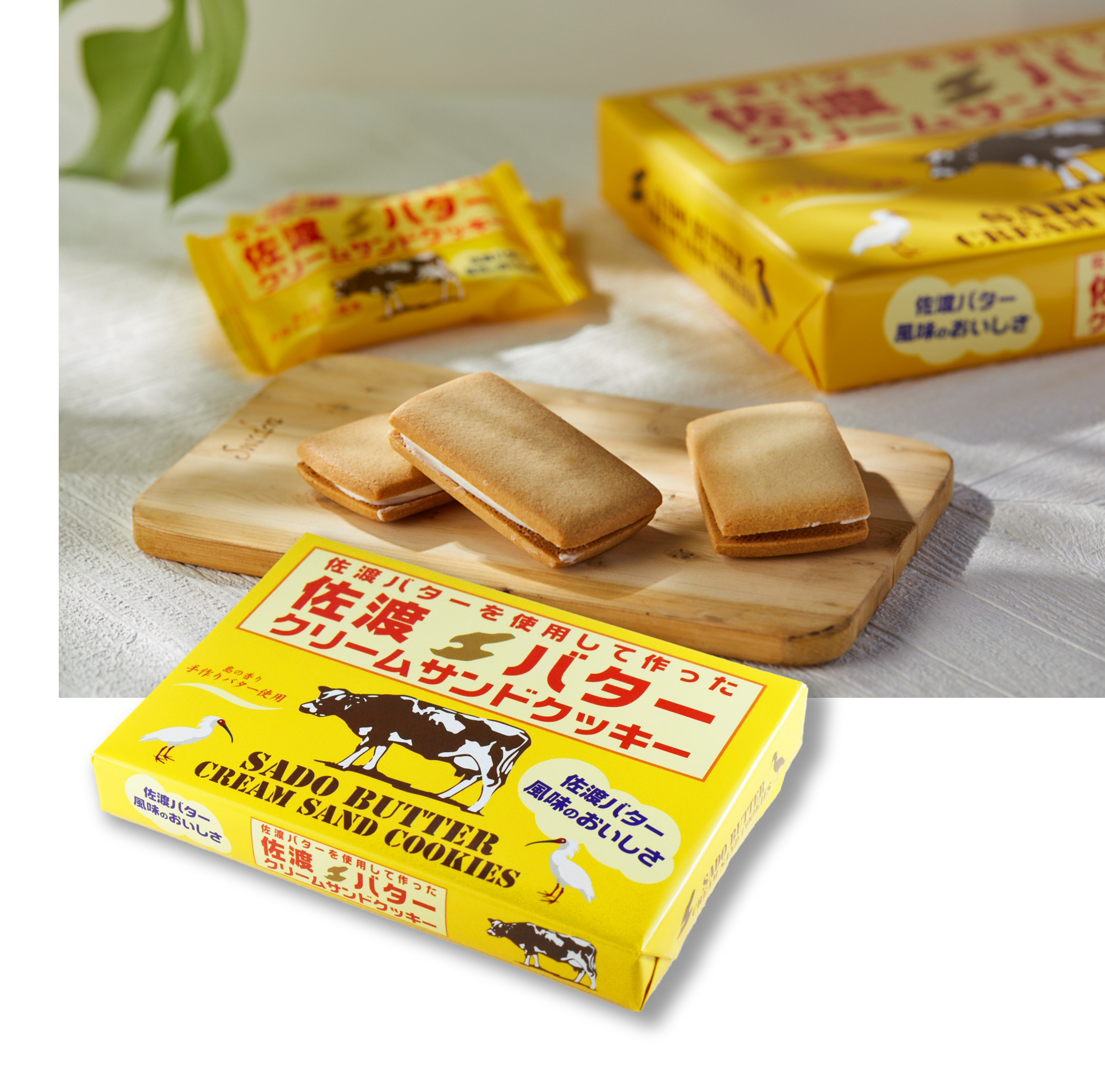 厳選した生乳と佐渡島でとれる海洋深層水を100%使用した食塩を使って作られた佐渡バターを使用したサンドクッキー。さっくりした食感のクッキーとしっとりした佐渡バタークリームの相性は抜群です。