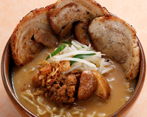 パンチのきいた味ながら塩分を抑えた濃厚味噌、肉厚チャーシューと相性抜群!