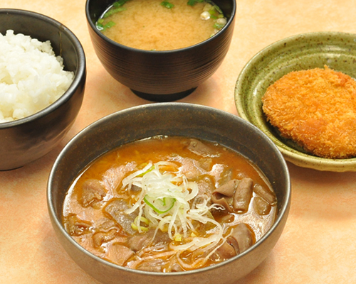 大人気!国産モツとコンニャクをじっくり煮込みました(ご飯・味噌汁・コロッケ付)