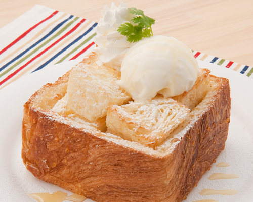 インスタ映え間違いなし!高級なデニッシュ食パンにアイスと蜂蜜がたっぷり♪