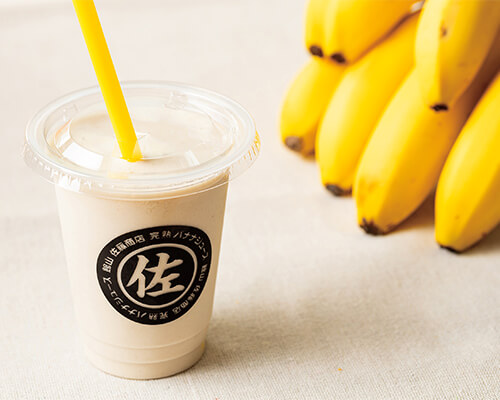 バナナ問屋の佐藤商店の甘い完熟バナナとミルクのフレッシュジュース。