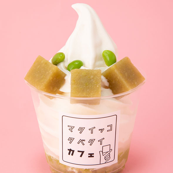 ずんだあんに、ソフトクリーム、ずんだきんつば、枝豆を載せたソフト。見た目もかわいい!