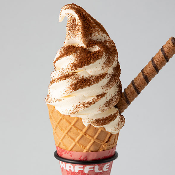 濃厚なバニラにコーヒーパウダーをふりかけた、ちょっぴり大人な味のソフト。ロールチョコのアクセントが絶妙!