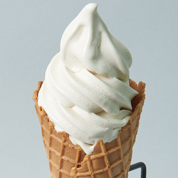 北海道産生乳と北海道産生クリームをたっぷり使用したソフト。北海道産素材ならではの豊かな風味をぜひ!