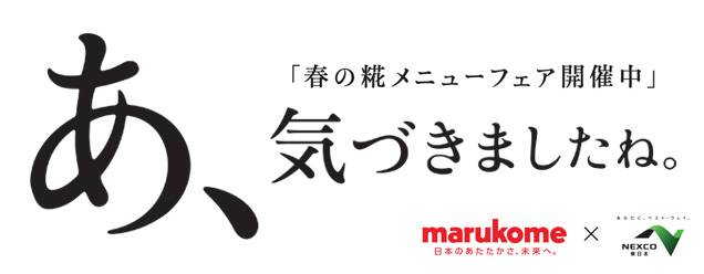 マルコメとNEXCO東日本がコラボレーション。上信越自動車道・長野自動車道のサービスエリア(SA)・パーキングエリア(PA)で、マルコメの糀商品を使ったオリジナルメニューを販売する「マルコメ 春の糀メニューフェア」を開催します。
