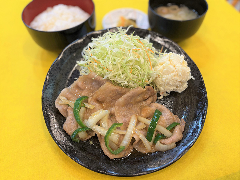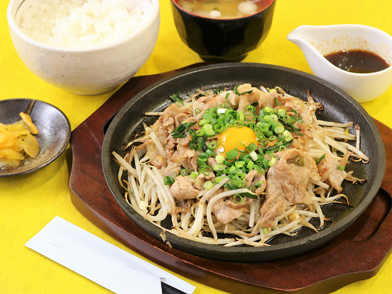 岩手県産豚ロースをニンニクが効いた自家製のタレで焼き上げたご飯がもりもり進んじゃう"がっつり系定食"です。