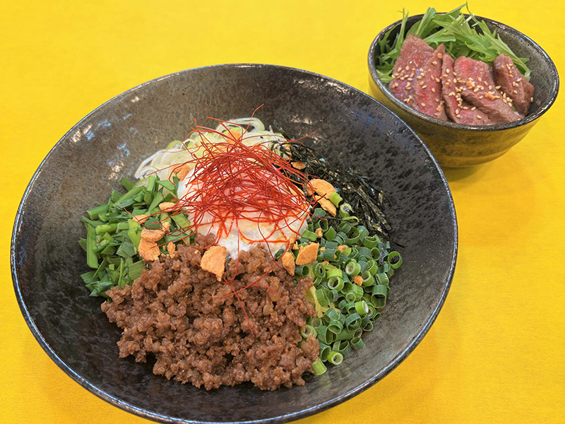 昨年、大好評いただいたスタミナメニュー「前沢牛混ぜそば」が「前沢牛ミニステーキ丼」とセットになってリニューアル!