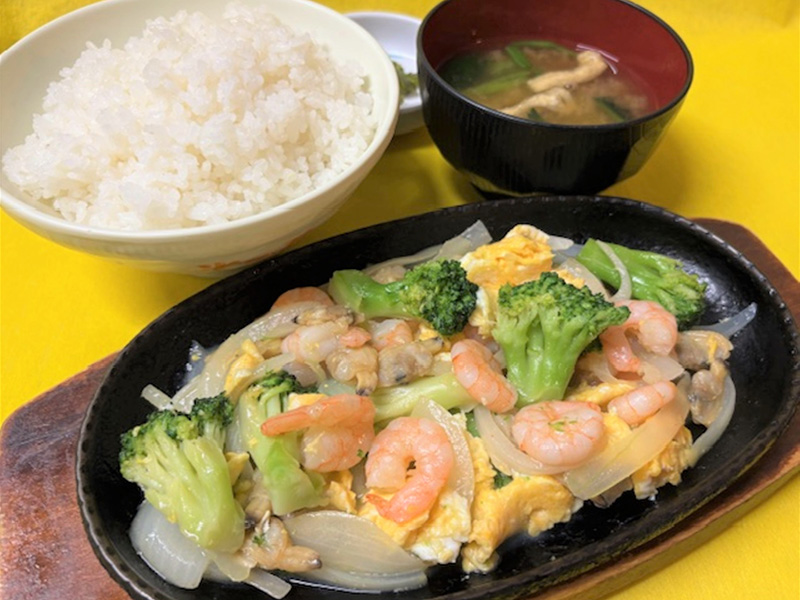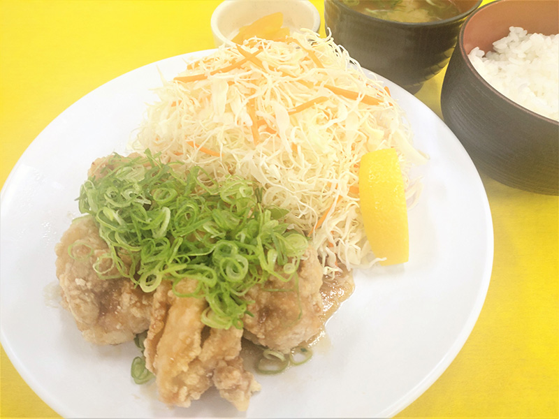 岩手県産「南部どり」をにんにくが効いたオリジナルのタレで漬け込んだ唐揚げと、本醸造しょうゆをベースに、ごま油、香味調味料、生姜を効かせた油淋鶏ソースがよく合い、ご飯がすすみます。