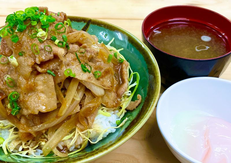 甘辛のにんにくダレが豚バラ肉と絡んで、ごはんが進む丼ぶり定食。ごはんの大盛お申しつけください。
